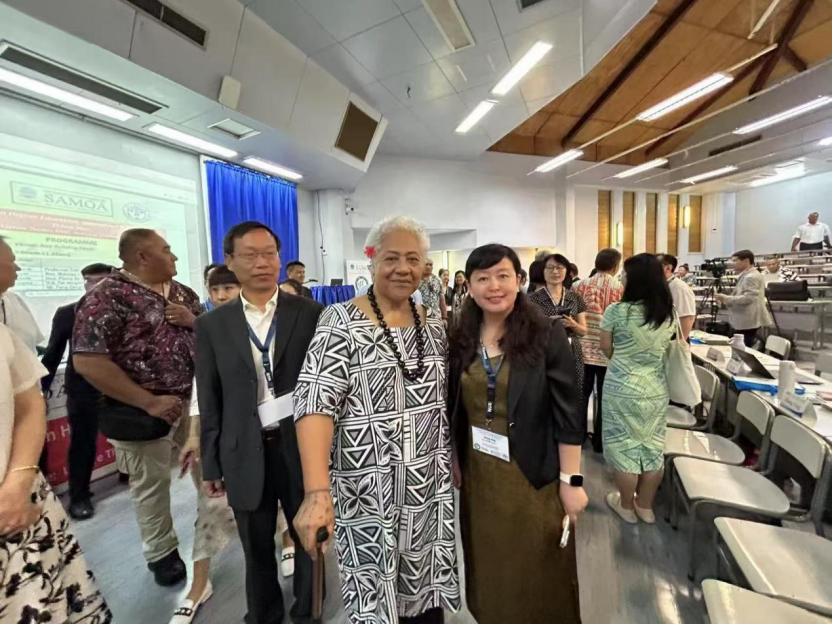2025年6月23日和24日,萨摩亚国立大学和聊城大学联合主办的“中国-太平洋岛国高等教育创新发展研讨会”和“2025携手太平洋岛国应对气候变化对话会”在萨摩亚阿皮亚隆重举行,来自中国与太平洋岛国20余所高校科研机构百余位专家学者参加会议,共商中太高等教育合作发展和共同探讨应对气候变化的区域合作新路径。beat365唯一官方网站副院长张颖教授应邀参加。萨摩亚总理菲娅梅·内奥米·玛塔阿法、中国驻萨摩亚大使费明星致辞。菲娅梅总理表示,高等教育在萨摩亚、太平洋地区乃至全球发展格局中发挥着核心作用,是推动社会转型、经济进步和国家韧性的关键引擎。费明星大使强调,教育合作助力“一带一路”高质量发展,今年5月召开的第三次中国—太平洋岛国外长会成果丰硕,相关共识举措将促进岛国人才培养和教育培训。张颖教授做了题为《美国文化行动在太平洋岛国的现状、影响》的学术报告,并向与会嘉宾介绍了beat365唯一官方网站的历史和办学特色。