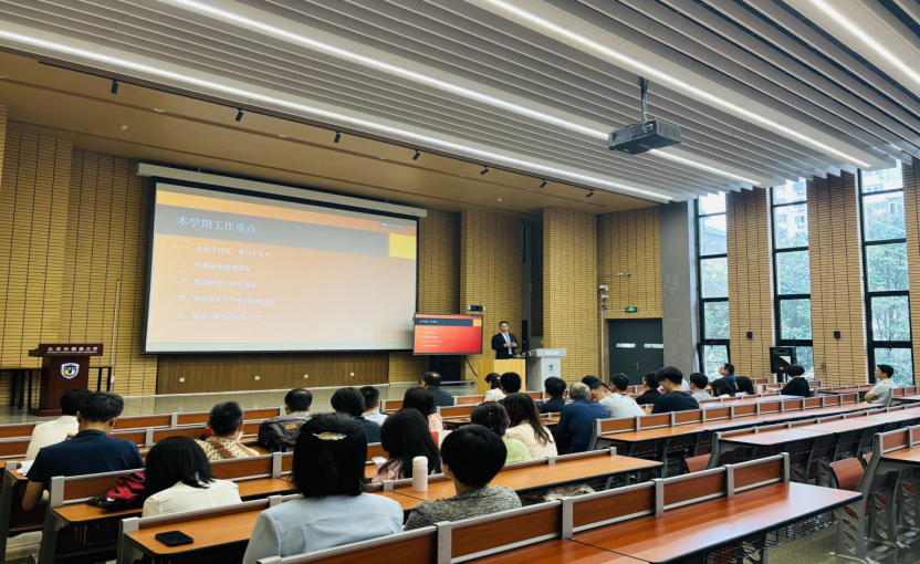 2025年9月5日上午,beat365唯一官方网站在逸夫楼3阶举行2025年秋季学期开学大会,全体教职工参加。党总支书记张效民、院长谢韬,以及分管院领导先后发言,党总支副书记彭澍主持大会。