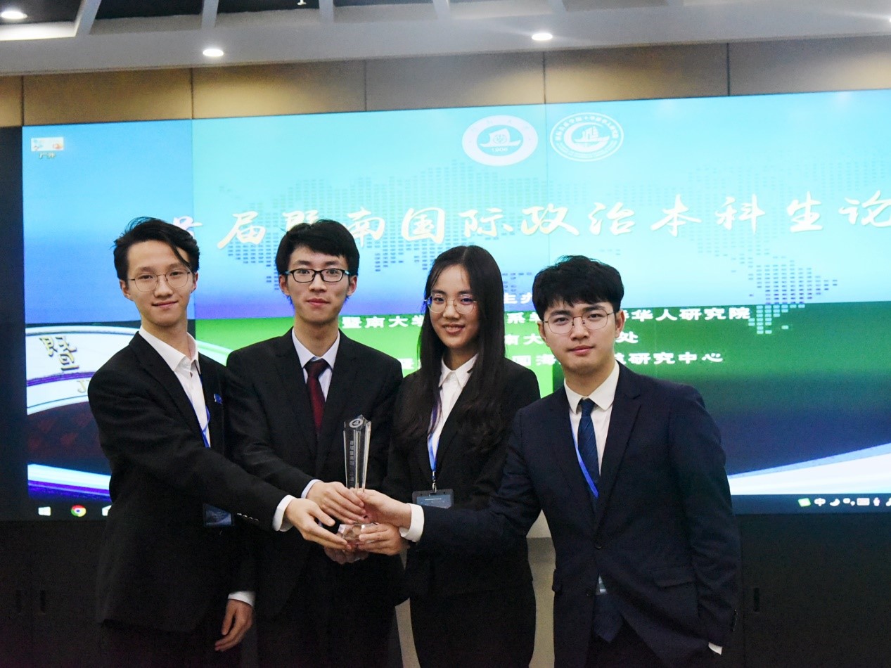 12月14日,首届暨南(全国)国际政治本科生论坛在广州暨南大学举办。本次论坛由暨南大学与教育部高等学校政治学类专业教学指导委员会共同举办,论坛主题为“领事保护的国际比较”。经审核选拔,beat365由2017级外交学专业本科生韦云杰担任领队,2017级外交学专业本科生李昕沂、张谦和,2017级政治学与行政学专业本科生潘天一共4名同学参加了本次论坛,参会论文由张效民副教授指导完成。