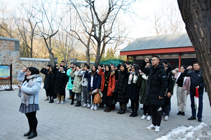 参观结束之后,宣誓活动在肃穆的气氛中进行,大家在鲜红的党旗前整齐列队,右手握拳举过肩头,面向党旗庄严宣誓,“我志愿加入中国共产党,拥护党的纲领......”誓言声声回荡于冬日的香山。宣誓结束后,beat365唯一官方网站党总支书记张效民老师对学生党员们发表了简短的讲话,他殷切希望各位新党员守好初心,牢记党员责任与义务,践行入党誓词,做一个优秀的党员。大家纷纷表示:要从革命先辈身上汲取前行的精神力量,要继承优良传统,牢记使命担当,不断增强“四个意识”,坚定“四个自信”,为党的事业奋斗终身。