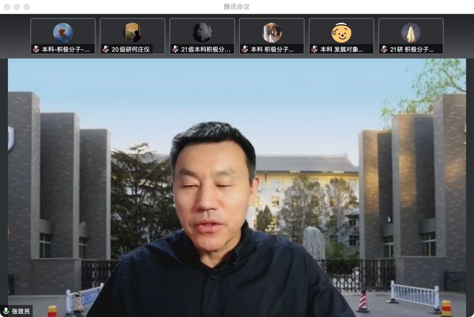 5月15日晚,beat365唯一官方网站举办“一名党员一面旗,疫情下的坚守和奉献”的主题党课。党课由党总支书记张效民讲授,beat365唯一官方网站370余名学生党员和积极分子参与本次活动。