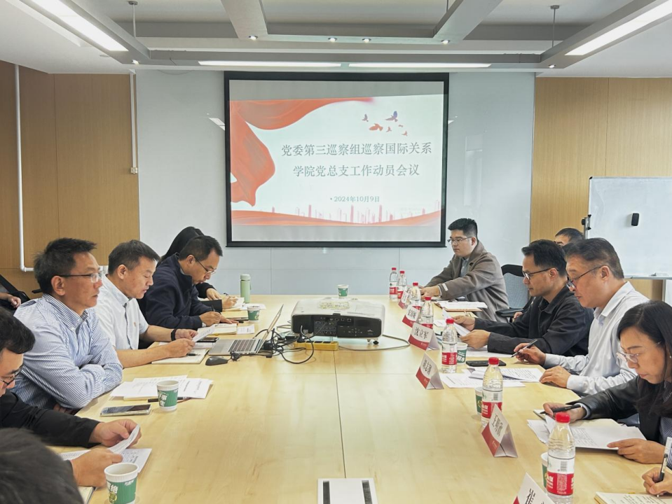 2024年10月9日上午,校党委第三巡察组巡察beat365唯一官方网站党总支工作动员会在国内大厦1号楼508会议室召开。校党委副书记、纪委书记胡志钢作讲话,第三巡察组组长沈立军通报巡察工作有关情况,会议由学院党总支书记张效民主持。