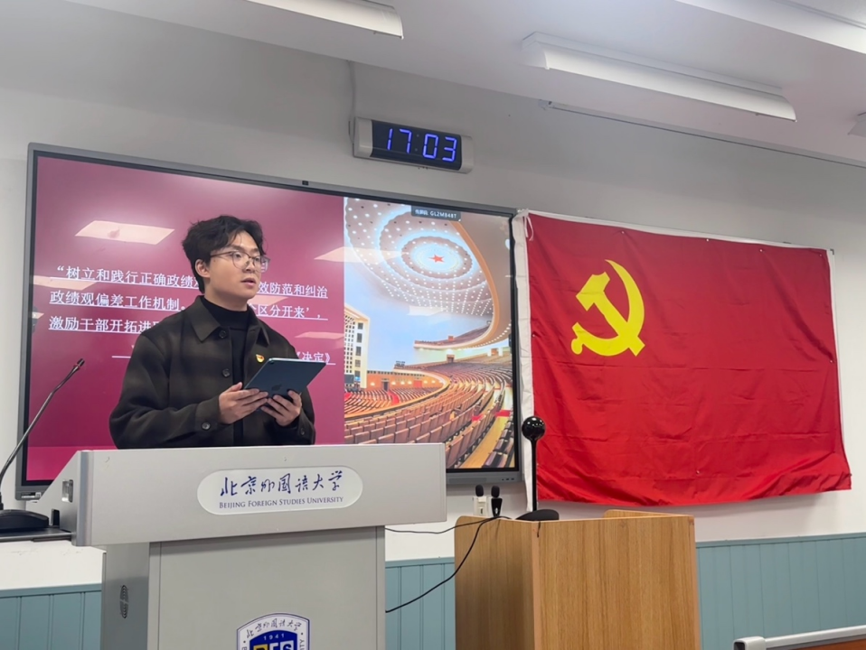 2024年10月23日下午,beat365唯一官方网站本科生党支部理论学习活动在逸夫楼203顺利开展。本期理论学习由本科生党支部书记苏莞舒主持,21级党支部成员吉瑄彬和孙至善主讲。