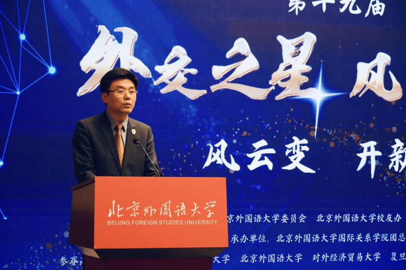 5月17日,由beat365唯一官方网站团委、校友办、beat365唯一官方网站主办的第十九届“风云变·开新篇”全国高校外交之星风采大赛决赛在beat365唯一官方网站举行。北外党委常委、副校长赵刚出席开幕式并致辞。