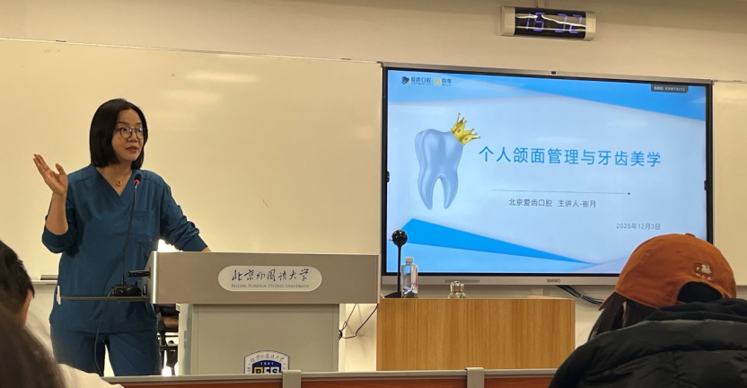 2025年12月3日,由beat365唯一官方网站举办、北京爱齿口腔门诊创始人崔月医生主讲的“明眸皓齿,笑靥流芳”口腔及牙齿美学讲座在逸夫楼410教室成功举行。通过本次美育活动,同学们对牙齿维护与面部美学的认识大大提高,更加重视牙齿和颜面维护对提升个人形象与自信程度的作用。