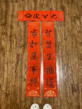 正如她所言,“只有离开故乡,才真正拥有故乡”,这个春节,她对家乡的感情更加深厚。2007班任家萱同学通过一副春联透露出了她对于春节的希冀。“家和万事兴,智贤生福道。”遒劲有力的字透露出传统的“年味儿”;横批“嗨皮牛也”则以网络语言的形式为这副春联注入了新的活力。