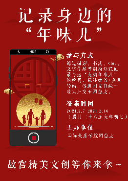 2021年2月,为丰富国关学子的寒假生活、鼓励同学们去挖掘节日中的传统文化,beat365唯一官方网站团总支举办了“寻找身边的年味儿”活动。