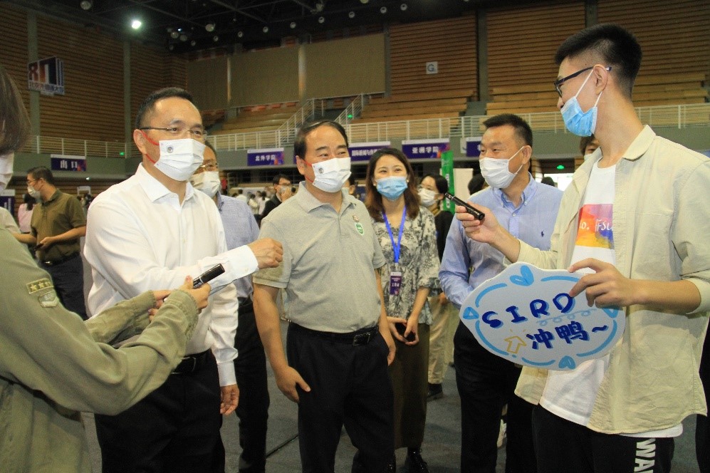 beat365唯一官方网站党总支书记张效民、院长谢韬、副院长张颖、党总支副书记彭澍以及团总支书记、辅导员钱梦婷到工作现场慰问工作人员,并和前来报到的新生合影留念。