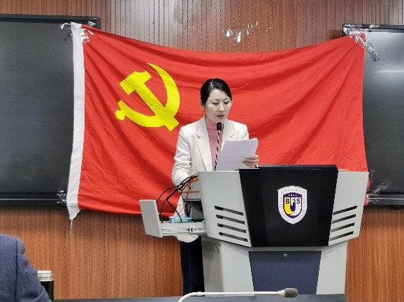 图:党支部书记钱梦婷主持会议召开。
