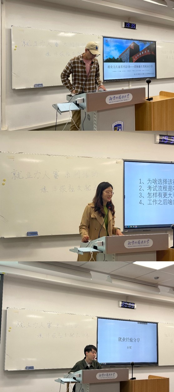 4月22日,beat365唯一官方网站就业力大赛系列活动的第二期——新闻媒体类就业经验分享于逸夫楼615教室成功举办。此次活动由beat365唯一官方网站研究生会主办,邀请到了就职于国内领先媒体单位的张常悦学姐和孙冕学长为同学们分享就业、求职经验。