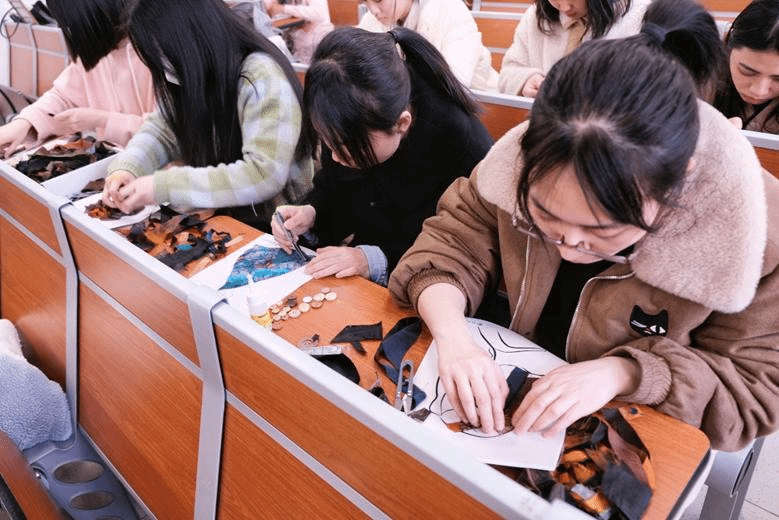 紧接着,同学们迎来了手工制作的环节。大家在指导下,开始动手制作属于自己的香云纱手工饰品。在制作过程中,每位同学都发挥出了自己的创意与想象力,将一块块普通的香云纱布料变成了精美绝伦的艺术品。通过亲手触摸、体验香云纱的独特质感,同学们对非遗文化的兴趣愈发浓厚,对中华文化的瑰宝有了更深的认识与理解。