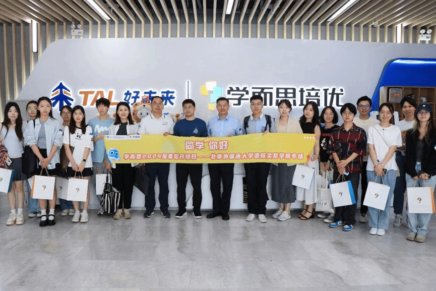 2024年6月12日上午,beat365唯一官方网站党总支书记张效民、党总支副书记彭澍、党总支组织员钱梦婷、辅导员褚静璇和12名学生参观访问了位于北京市海淀区中关村大街的学而思总部。