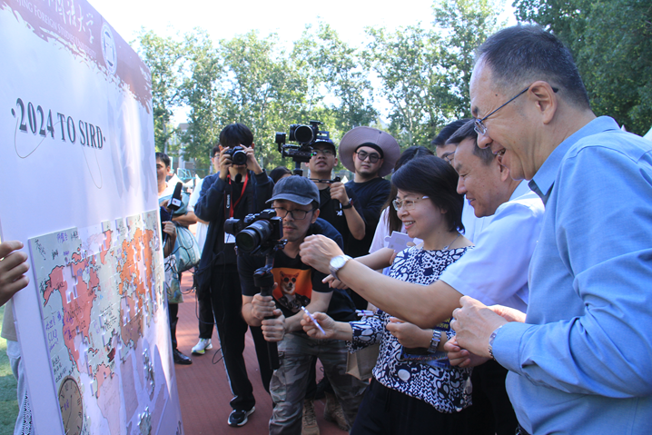 新生报到当天,在工作人员的引导下,新同学有序排队,依次递交资料,随后领取新生大礼包,随机抽取印有学长学姐寄语的贴纸,并在特色地图墙上签名、合影留念。摄影师记录下了他们的憧憬与激动,国关学院的报到区人头攒动、气氛热烈,彰显着国关活泼开放又不失扎实严谨的氛围。
